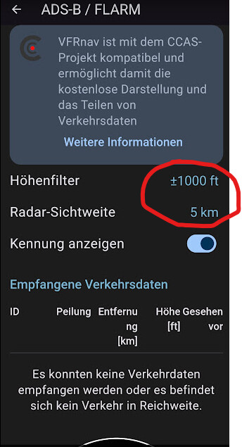 Ho comunque mantenuto due livelli di filtri. Il primo in CCAS per non mostrare su VFRnav aerei inutilmente, ma solo quelli che non sono troppo lontani.