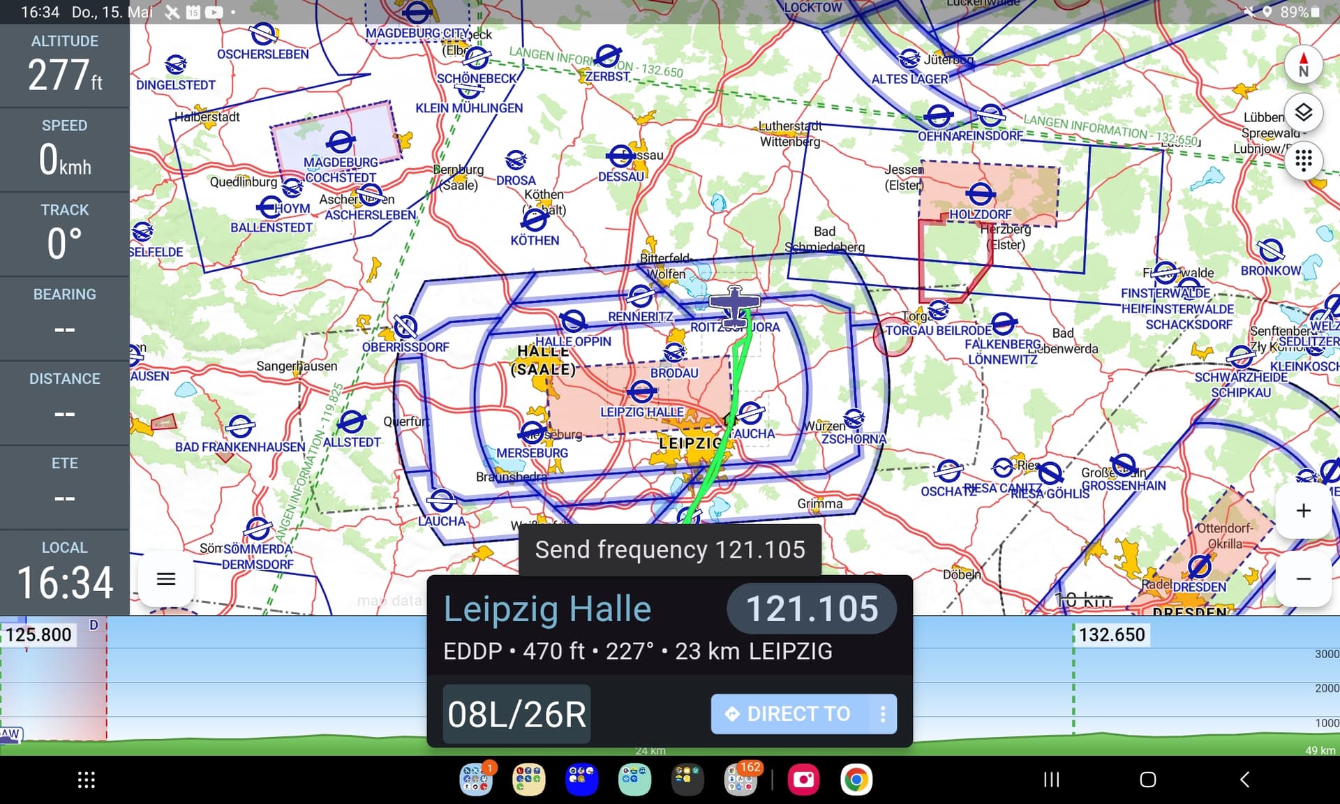 \u003e Remarque : si l’adaptateur BTLE est correctement configuré, la fréquence de l’aérodrome apparaît comme un bouton avec un texte bleu clair. Si l’adaptateur n’est pas correctement configuré, la fréquence apparaît comme d’habitude dans VFRnav.