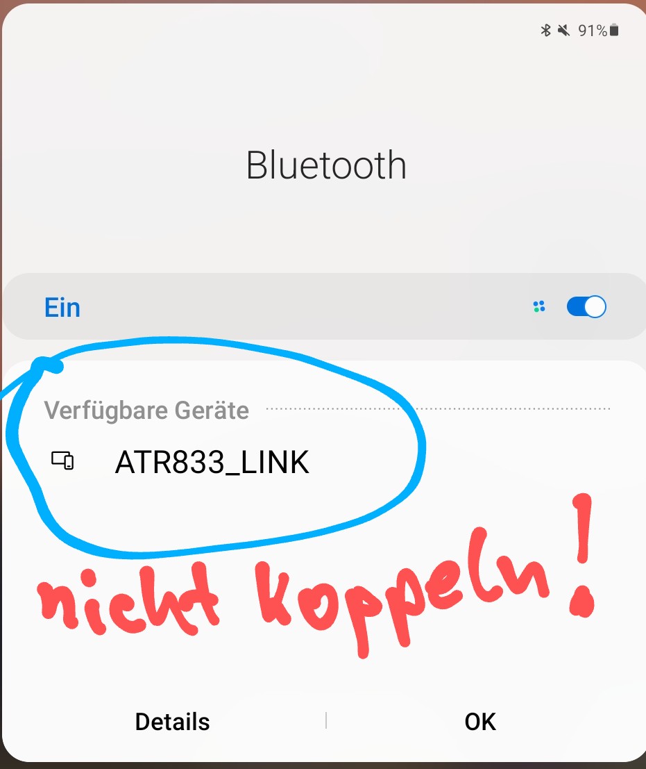 Paramètres -\u003e Appareils -\u003e Connexions d’appareils -\u003e # Schnittstelle (taper) … recherche… ATR833_LINK devrait être trouvé. Le sélectionner