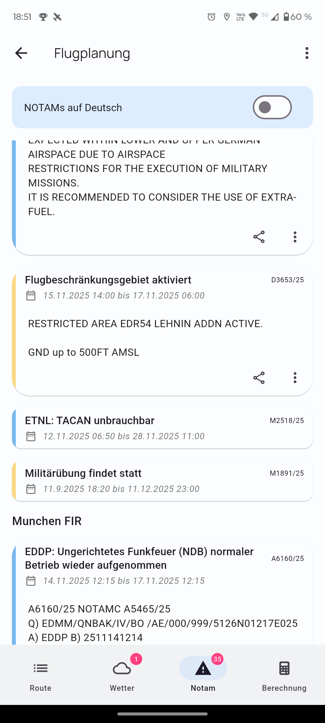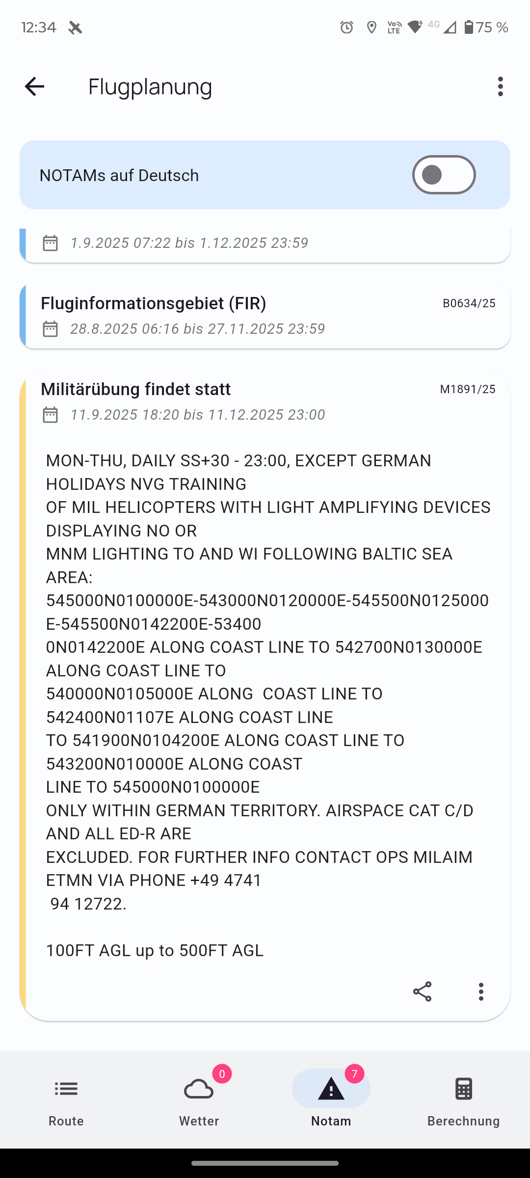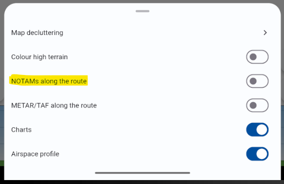 What I meant was that from the NOTAM overview you can display the NOTAM on the map and, with a button (which you could add to the three-dot menu), jump straight to the map and have the NOTAM’s circle displayed.