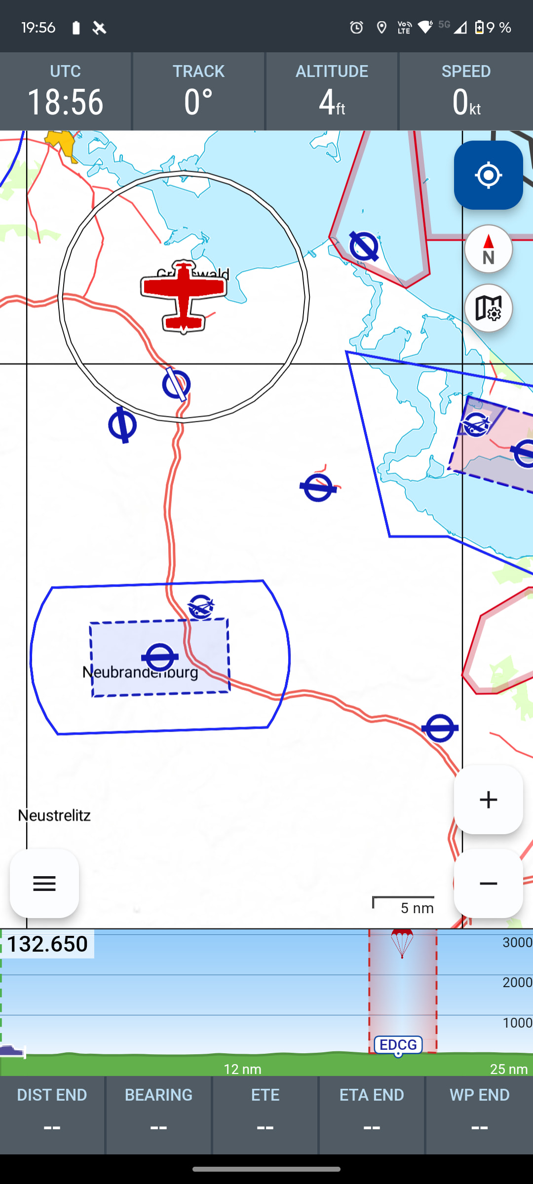 Es wird einfach komplett grau, mit ein paar Notamkreise.
