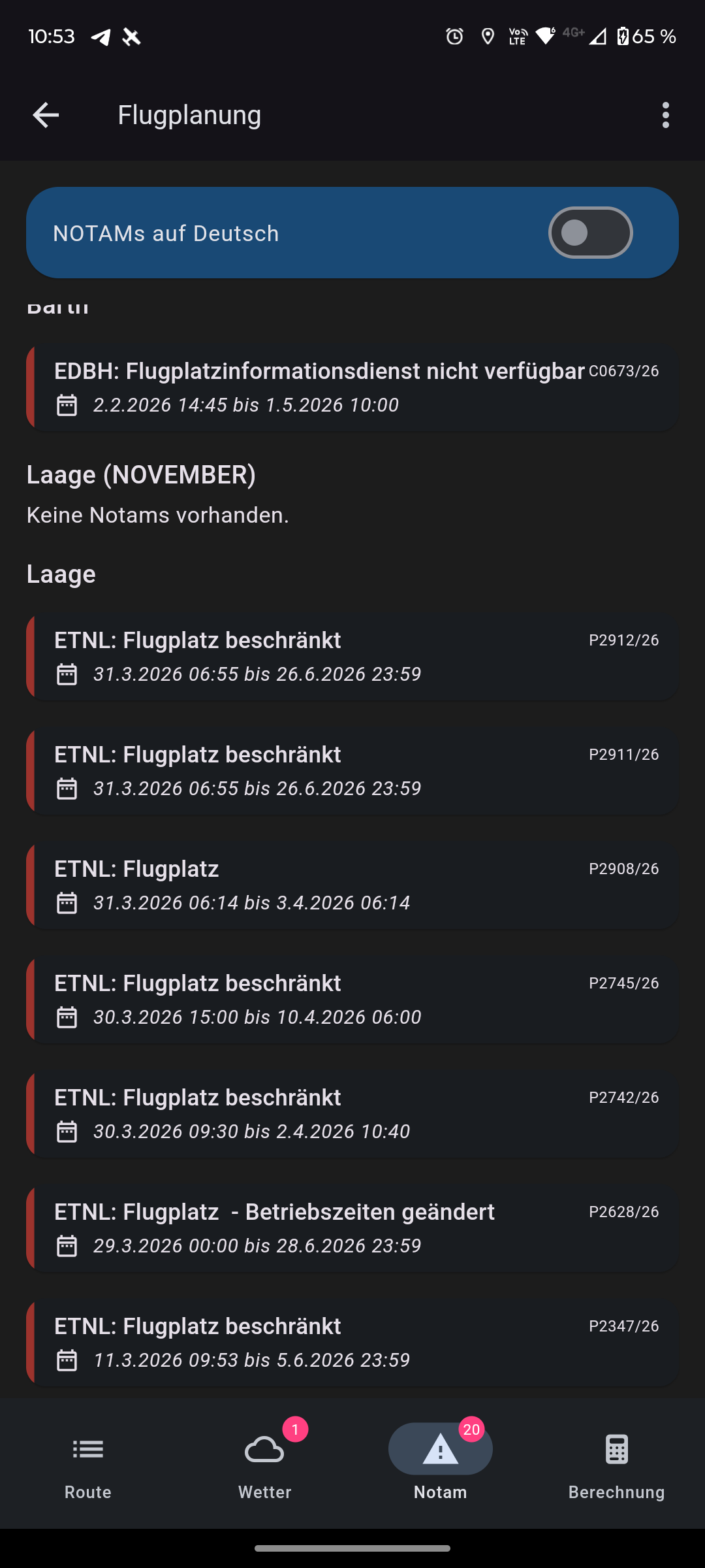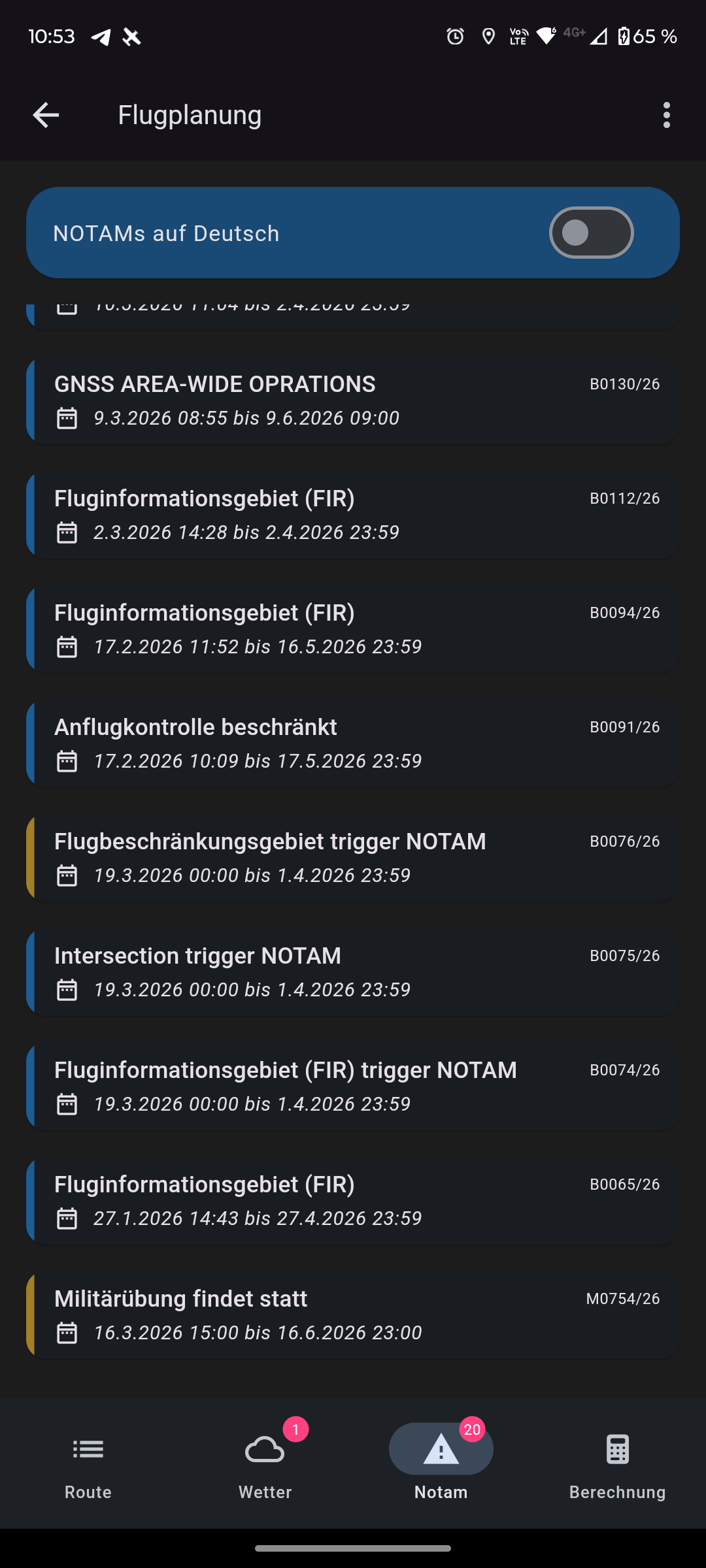 Du meinst im Abschnitt →Flugplanung →Notam ?