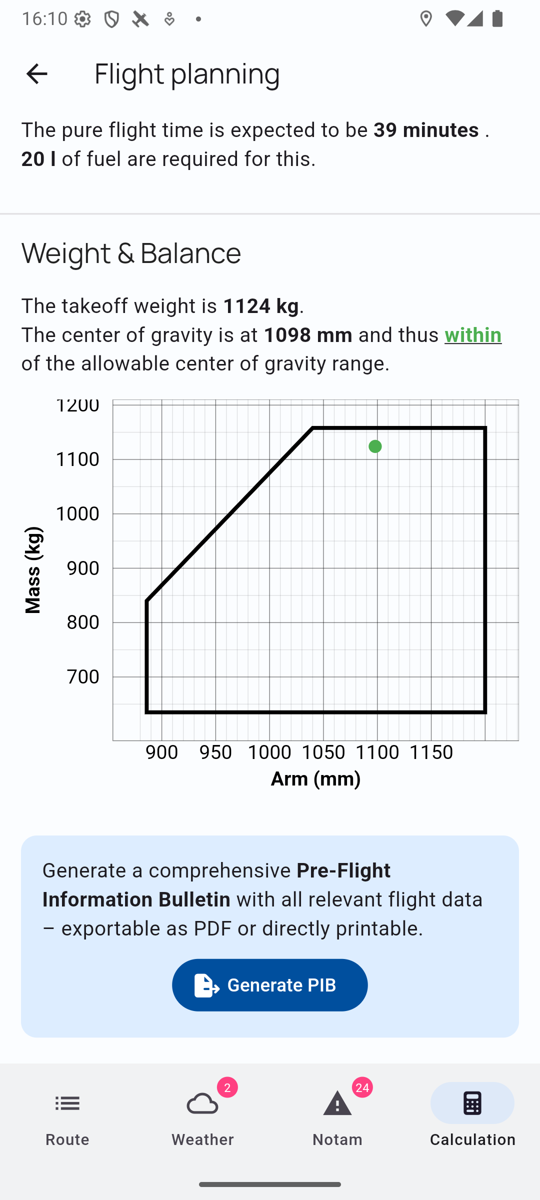 Truly remarkable how this is evolving. Full respect. I was able to enter the data from weighing and the manual without any issues. It’s a great feeling to have the data included in the PIB as print. That reminds me: perhaps the limits should also be listed in the PIB. Or a short text along the lines of “Weight and balance are within limits.” or so.