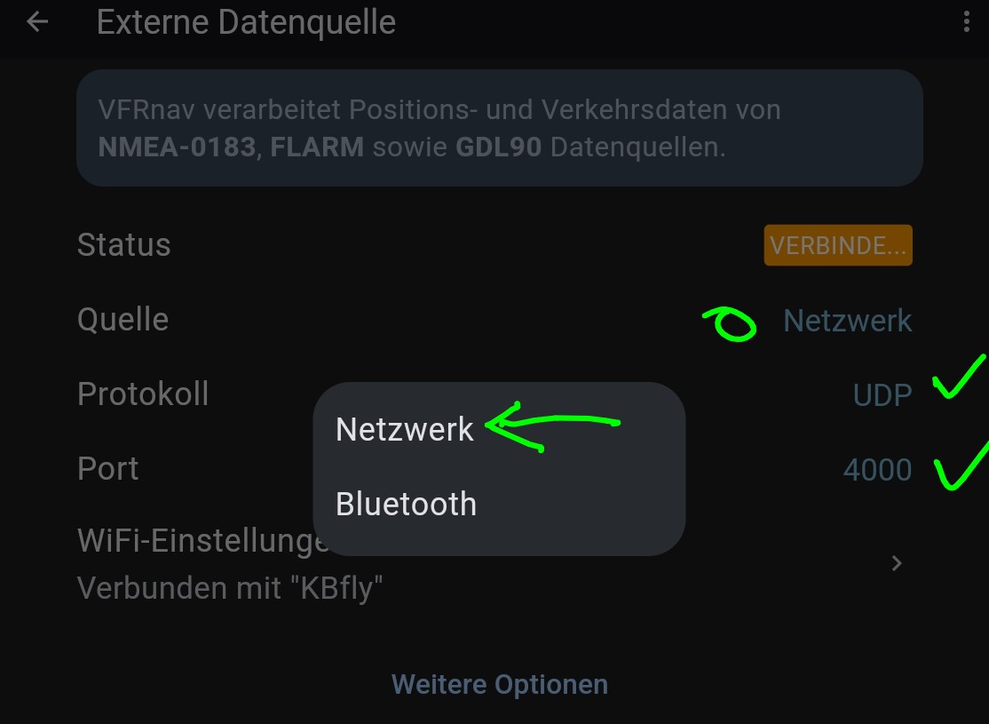 I have noticed with my VFRnav-STRATUX connection that when I connect via the WLAN network âSTRATUXâ, the VFRnav appâs âExternal Data Sourceâ also displays the STRATUX GPS reception graphically. Unfortunately, I cannot access the internet via âMobile Dataâ, which is important in flight for NOTAMs or weather