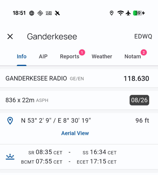 New: The satellite view now allows you to quickly and reliably inspect any airfield from an aerial perspective, making it easier to identify runways, surroundings, and terrain features.