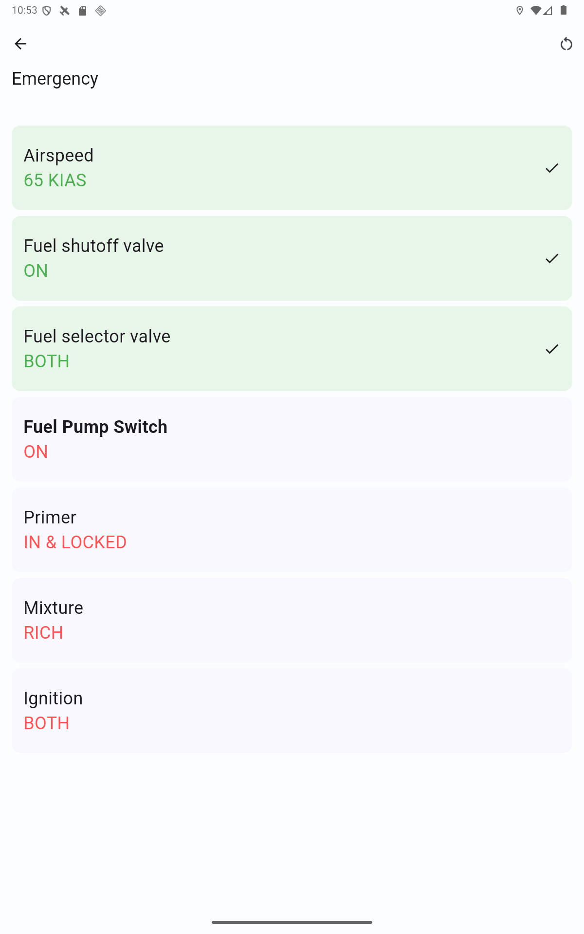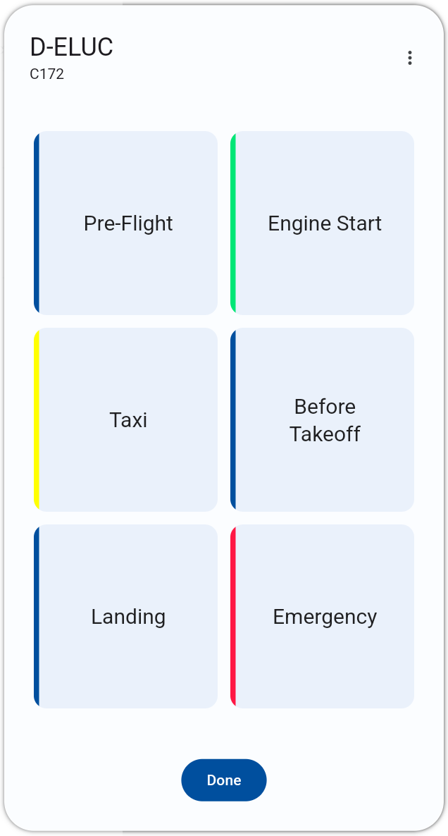 That often makes sense, but sometimes it doesn’t — therefore we will initially refrain from this implementation. The reason: Many checklist sections build upon each other in chronological order. However, there are also sections that are independent or not temporally close to the previous section. An example is, for instance, “Emergency” or also “Landing” after the “Takeoff” section.