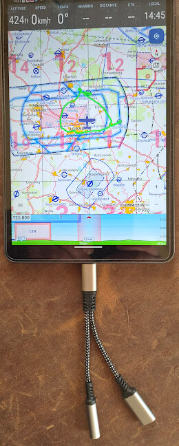 Sul mio vecchio tablet e telefono finora ho usato l’uscita audio (mini-jack) per gli avvisi di spazio aereo e di traffico, per poi inserirla, molto classicamente, via cavo nell’interfono. Ora mi sono comprato un piccolo tablet e un telefono molto recenti. Entrambi non hanno più il piccolo jack.