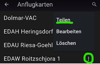 - …wir wählen das Anflugblatt → gehen auf die 3 Punkte und Teilen es z.B. in ein Cloudlaufwerk, auf einem USB-Stick via Gender-Changer-usb, oder eben per email. Dieser Weg ist leider derzeit noch etwas aufwendiger. Den Weg benötigt man aber nur für selbst referenzierte Karten!