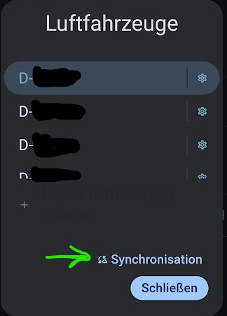 - Synchronisation Flugbuch: → siehe oben