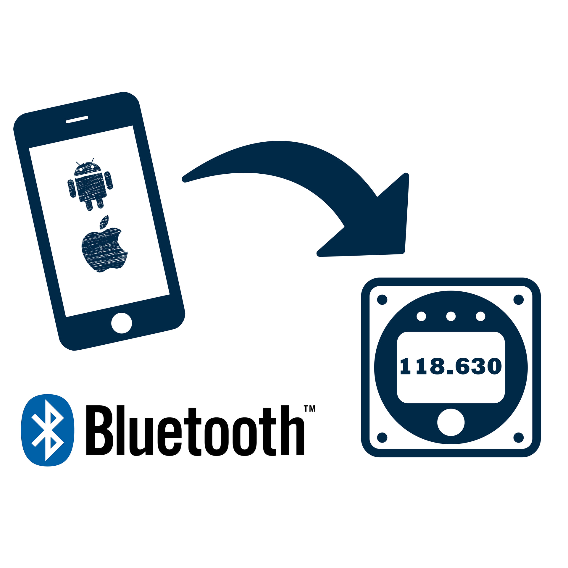 The connection between VFRnav and the radio is made via a compatible Bluetooth adapter.