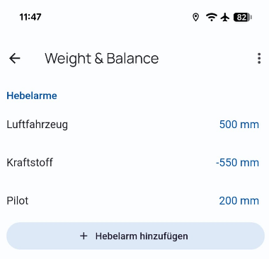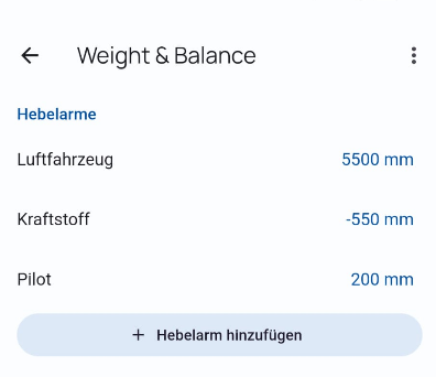 On the following page, fill in all the data. The corresponding values can be found in the latest weighing report and in the aircraft manual. Note: please scroll down at certain points if necessary to see more fields.